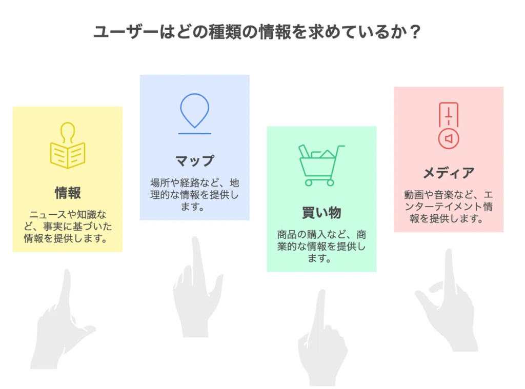 GoogleはAIを使い、ユーザーが今どのバケツの情報を欲しがっているのか(検索意図)を瞬時に判断し、最適な答えを提示しようとしているのです。